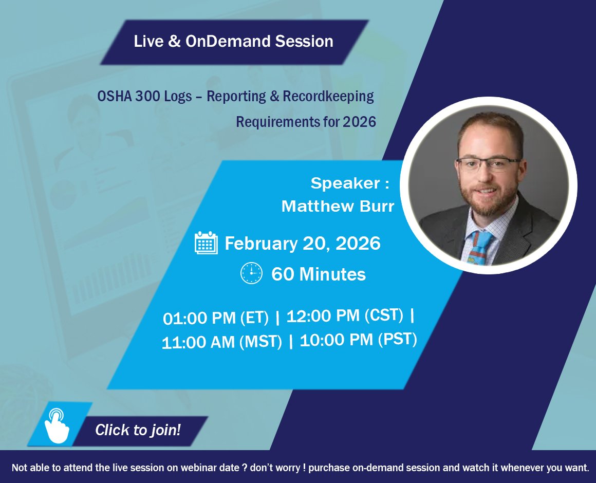 Confused about which OSHA reporting and recordkeeping requirements apply to your organization? In this session, we’ll review these requirements – who they apply to, what your company must do for compliance, and when to complete various responsibilities. We’ll review the OSHA 300 forms in detail and will also cover OSHA’s new electronic submission of injury and illness records requirements.